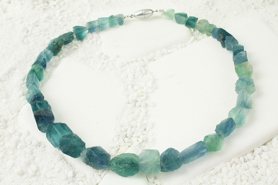 Stilvolles Fluoritcollier in hellblau bis grünen Farbtönen